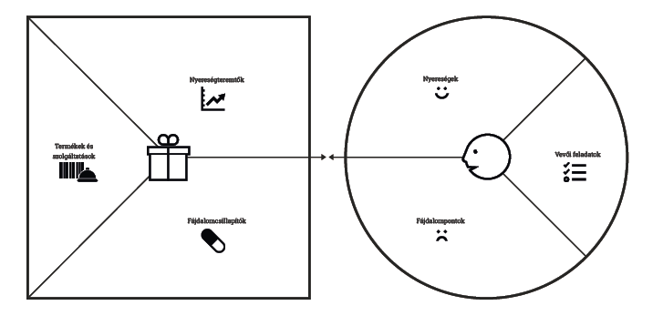 Most nézd meg a vásárlói oldalon lévő „Fájdalompontok” és „Nyereségek” részt, amit az előbb felraktál, majd vesd össze azzal, amit a termékeid, szolgáltatásaid nyújtanak!
